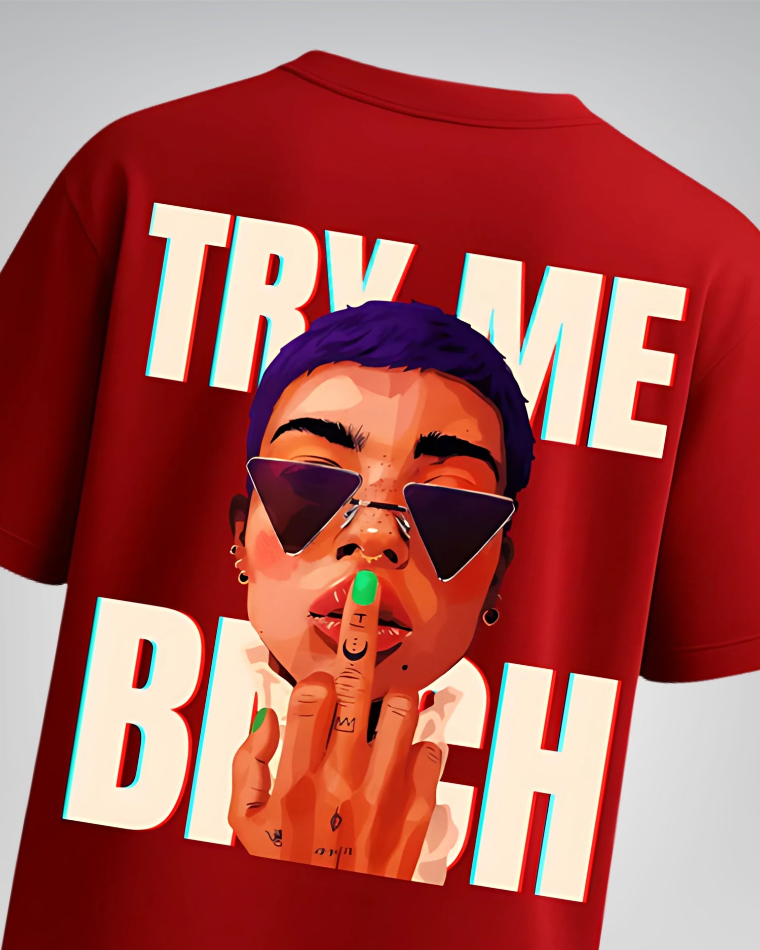 This design isn’t for the faint of heart. Featuring a vibrant pop-art illustration with sharp shades, neon vibes, and unapologetic attitude.